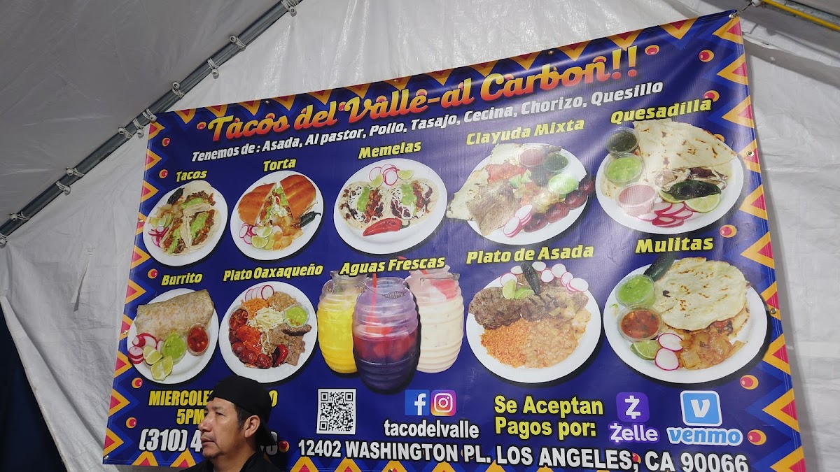 Welcome to Tacos de Valle al carbon, a vibrant food truck nestled in Los Angeles, bringing authentic Mexican flavors right to your palate. Known for its tantalizing taco offerings, the menu boasts a variety of meat options including Asada, Al Pastor, Chicken, Carnitas, Cabeza, Grilled Veggie, Lengua, Chorizo, Tasajo, Cecina, and even Shrimp, each garnished with fresh onions and cilantro. For those seeking a heartier meal, their burritos are a must-try, filled with pinto beans, Spanish rice, and your choice of succulent meats, all drizzled with hot sauce.
